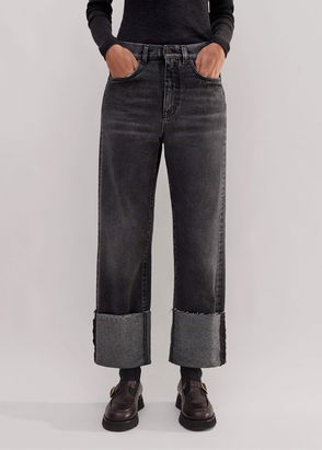 Authentic Relaxed Deep Turn-Up Jean Washed Black