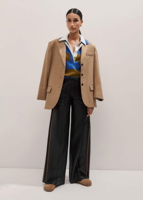 Leather Sporty Wide-Leg Track Pant Black/Toffee