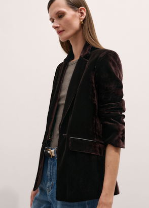Silk Blend Velvet Deconstructed Blazer Double Espresso