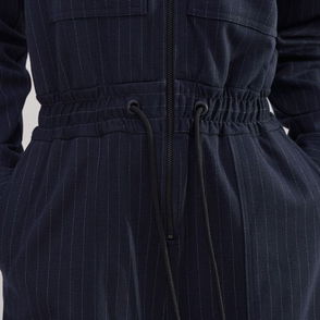 Travel Tailoring Pinstripe Cargo Jumpsuit Navy/White