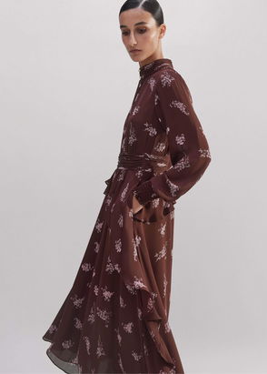 Silk Scattered Floral Print Midi Dress Rum Raisin/Fresh Lavender