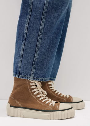 Brushed Cashmere Stripe Crop Jumper Ganache Brown/Cobalt Blue