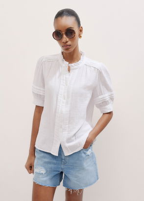Silk Am-Pm High Neck Top + Embellished Collar Light Cream