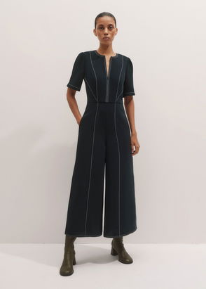 Modern Twill Contrast Stitch Crop Jumpsuit + Belt Navy