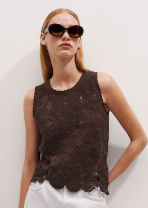 Asymmetric Cotton Crochet Vest Summer Chocolate