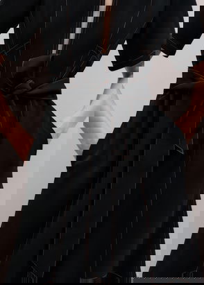 Modern Twill Contrast Stitch Midi Dress + Belt Black