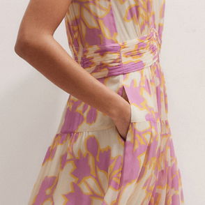 Shadow Paradise Print Halterneck Midi Dress Buttercream/Lilac/Multi