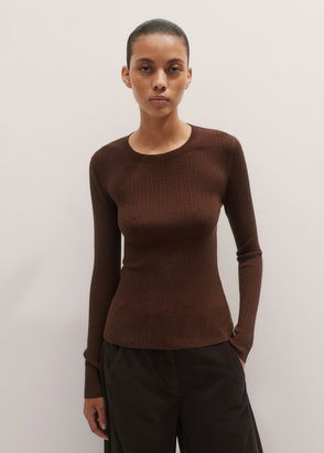 Merino Cashmere Barely There Rib Layering Jumper Chestnut Brown
