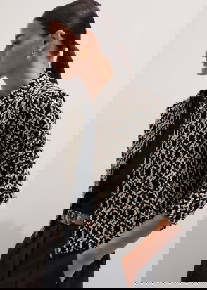 Graphic Jacquard Zip-Through Top Navy Multi