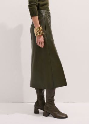 Linen Blend Wrap Maxi Skirt Dark Tan