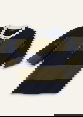 Relaxed Stripe Knit Henley Tee Bright Navy/Olive