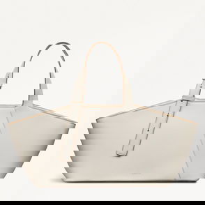 Freda Lane Leather Large Ziptop Shoulder Bag In Chalk