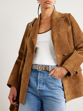 Double Buckle Leather Belt, Black/Tumbled Deep