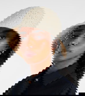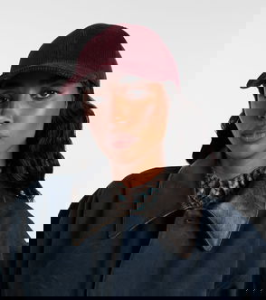 Pink & Red Blanket Stitch Knitted Beanie Hat
