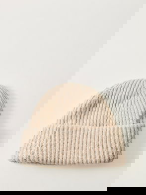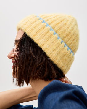 Yellow & Blue Blanket Stitch Knitted Beanie Hat