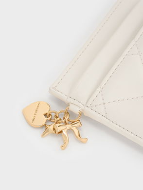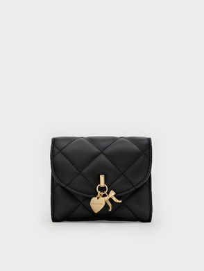 Arrietty Quilted Bow-Heart Charm Curved-Flap Wallet