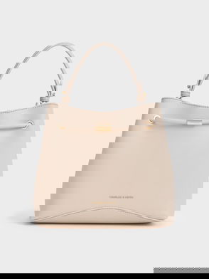 Beryl Recycled Leather Double-Handle Belted Bucket Bag