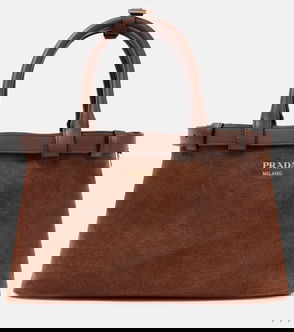 Igor Large Suede Leather Shoulder Bag, Medium Brown