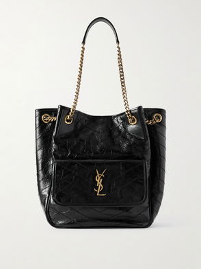 Niki Crinkled Glossed-Leather Shoulder Bag