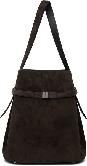 Brown Belted Suede Bucket Bag