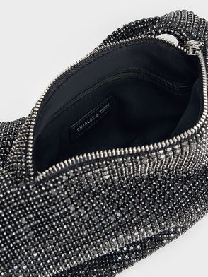 Crystal-Embellished Knotted-Strap Shoulder Bag