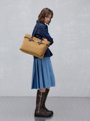 Arlet Recycled Suede Double-Handle Belted Tote Bag
