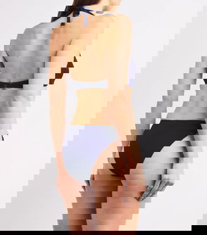 Colour-Block Lattice-Trim Swimsuit In Chocolate Brown/Black