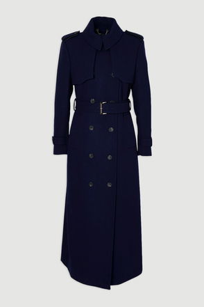 Petite Wool Investment Notch Neck Belted Detail Tailored Maxi Coat