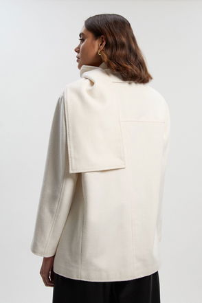 Brushed Wool Detachable Scarf Tailored Short Coat