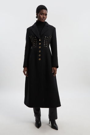 Wool Corset Detail Full Skirted Tailored Maxi Coat