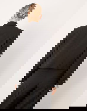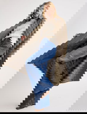 Wool Blindseam Contrast-Lapel Coat In Neutral