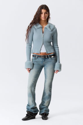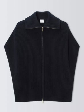 Pure Wool Rib Knit Zip Through Gilet, Navy