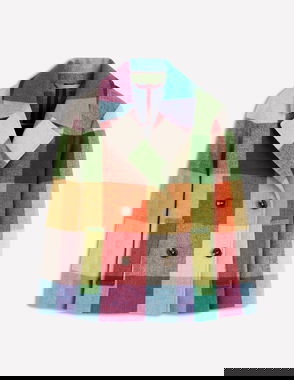 Revere Collar Wool Coat-Giant Multigingham