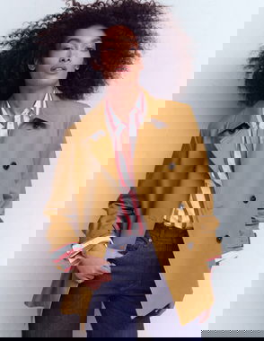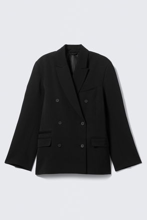 Loose Fit Double-Breasted Linen-Blend Blazer