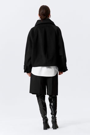 Black Raglan Leather Coat
