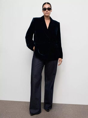 Combi Double Breasted Velvet Blazer, Black