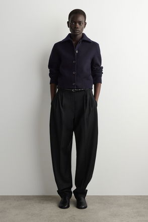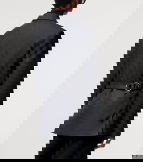 Short Removable-Collar Stretch Wool-Blend Jacket