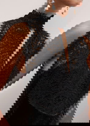 Silk Organza Lace Maxi Dress Black