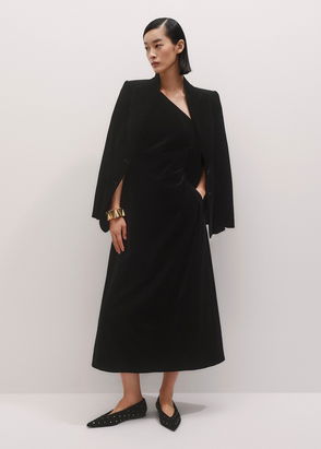 Fit And Flare Velvet Maxi Dress With Satin Bow Black