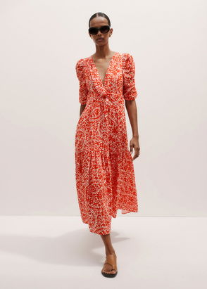 Cheesecloth Mono Paisley Print Maxi Dress Orange/Soft White