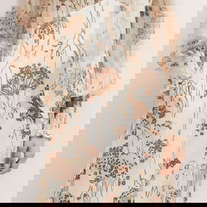 Linen-Blend Stencil Meadow Print Maxi Dress + Corsage Light Cream/Peach