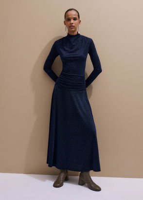 Metallic Draped Cowl Neck Maxi Dress Midnight Navy