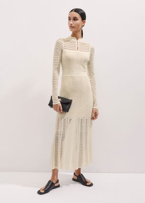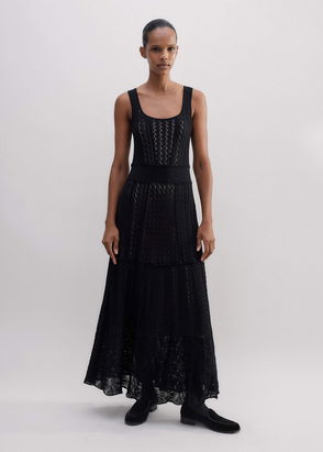 Fine Pointelle Knit Maxi Dress Black
