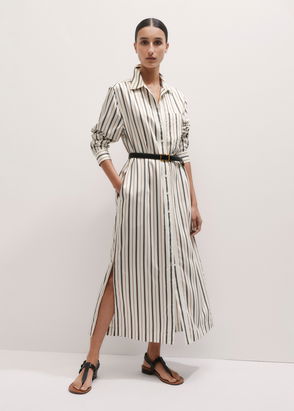 Fluid Maxi Shirt Dress White/Tobacco