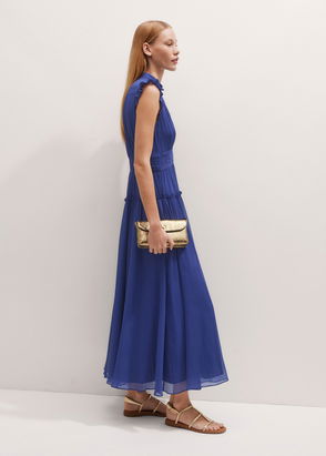Fluid Crepe Jersey Pleat Front Maxi Dress Topaz Blue