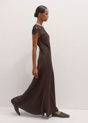 Silk Blend Velvet Lace Panel Maxi Dress Double Espresso