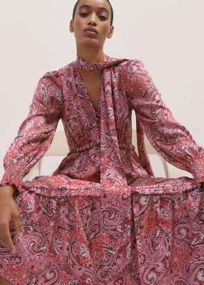 Intricate Paisley Print Maxi Dress + Tie Sugar Salmon/Pink/Multi