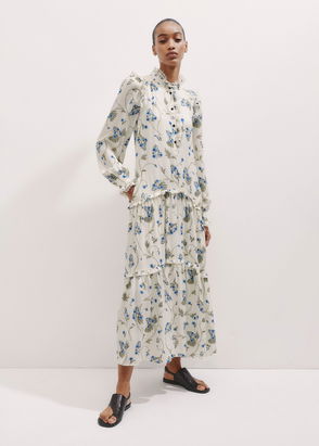 Silk Forget-Me-Not Print Maxi Dress Light Cream/Blue/Multi