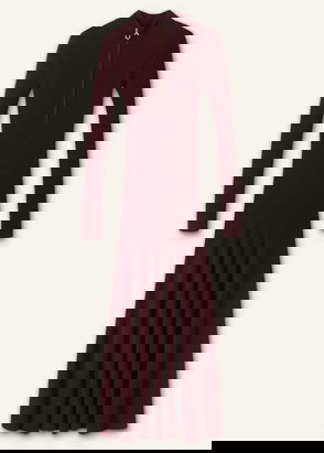 Collared Contrast Panel Maxi Dress Rhubarb Pink/Bordeaux