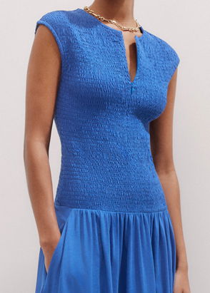 Slub Jersey Smock Bodice Maxi Dress Provence Blue
